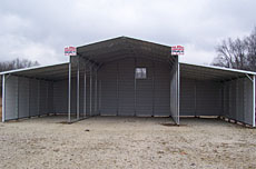 | "Northedge Steel" Carport, 18' x 21' Regular, 14 gauge, 5' high, installed on your level surface. Available in 12 colors. Many options also available. Call for more information or literature. | "Northedge Steel" Carport, A-Frame Style, 18' x 31', 7' leg height, with 8' x 7' enclosed. Installed on your level surface. | "Northedge Steel" Carport, 42' x 26' A Frame Style, 12' leg height, with 2-12' x 26' x 8' Lean To, installed on your level surface. Call for more information or literature. |