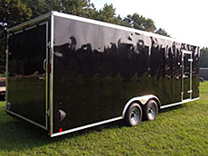<< SOLD >> 2024 Interstate Cargo/Car Hauler: 8-1/2' x 24' + wedge nose, 7' tall, 2-5200# torsion axles, 15" 6 lug radials, side door, rear ramp with beaver tail, 4 D-rings in floor, 16" on center, fume vents, $11,300. |