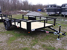 | 2024 Interstate 82" x 10' Utility, 3500# spring axle, 15" 5 lug radial tires, mesh gate-lays flat on floor, 2" coupler, treated lumber, Black. $2650. | 2024 Interstate 82" x 12' Utility, 3500# spring axle, 15" 5 lug radial tires, mesh gate-lays flat on floor, 2" coupler, treated lumber, Black. $2750. | 2025 Interstate 82" x 14' Utility, 3500# spring axle, 15" 5 lug radial tires, mesh gate-lays flat on floor, 2" coupler, treated lumber, Black. $2900. |