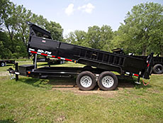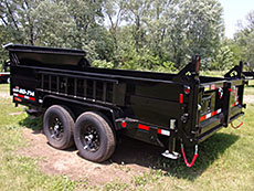 | 2026 Interstate Low Profile Dump, 83" x 14', 2-way power up/down cylinder rams, 2-7000# spring axles, 16" 8 lug, 10 ply radials, 4 wheel brakes, adjustable 2-5/16" coupler, tarp, ramps, rear stab jacks, double rear spreader doors, onboard charger, $9750. | 2025 Interstate Low Pro Dump: 83" x 16', telescopic hoist, 2-7000# spring axles, 16" 8 lug radials, tarp, stab jacks, ramps, double rear spreader doors, onboard charger, $11,000. | |
