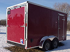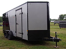 2026 Interstate Cargo: IFC Model, 7' x 14' + wedge nose, 7' tall, side door, rear ramp, fume vents, 4 D-rings in floor, 2-3500# torsion axles, 15" 5 lug radials, 16" on center, $7800. | 2025 Interstate Cargo: 7' x16' + wedge nose, 7' high, 2-3500# torsion axles, 4 wheel brakes, 15" radial tires, side door, rear ramp, flow thru fume vents, 4 D-rings in floor, floor, walls & roof 16" on center, 2-5/16" coupler, with free Black Out Package ($600 Value. $8400. |