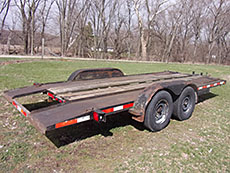 | 2002 M-M Car Hauler: 82" x 16' + 2' tail, 2-3500# spring axles, 4 wheel brakes, 15" 5 lug radials, 2-5/16" coupler, open center, ramps lay on floor, $2250. | ||||